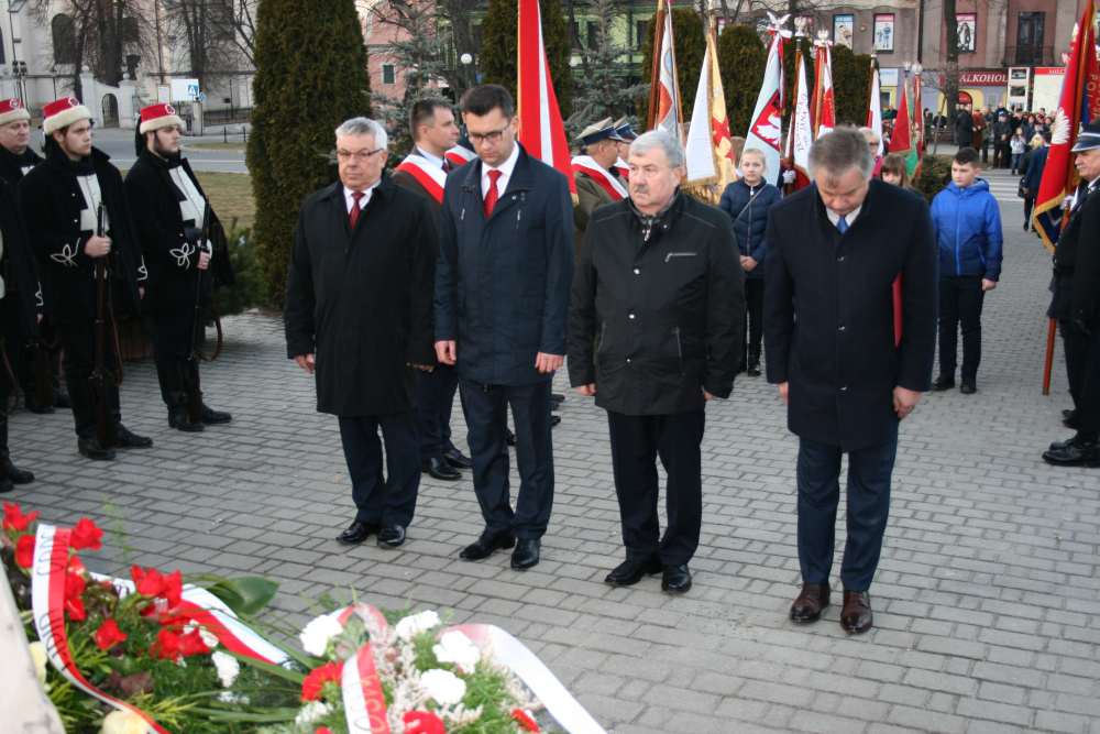 18 Lutego 2019Tablicę ufundowaną przez mieszkańców miasta w 156. rocznicę tragicznej bitwy odsłonili na frontonie kościółka św. Barbary na miejscowym cmentarzu - proboszcz ks. Franciszek Siarek wraz z duchownymi parafii oraz starosta Jacek Kobyłka, burmistrz Dariusz Marczewski i Michał Biernacki, przewodniczący lokalnego Stowarzyszenia Miłośników Odnowy Zabytków i współinicjator przedsięwzięcia. W czasie mszy okolicznościową homilię wygłosił ks. kapelan Stanisław Latosiński, nawiązując do bohaterstwa powstańców, których ok. 200 straciło życie. Posłanki Lidia Gądek i Agnieszka Ścigaj, delegacje samorządowe, zakładów pracy, szkół, stowarzyszeń, harcerzy i kombatantów złożyły kwiaty przy mogile powstańców na cmentarzu i pod pomnikiem z Orłem na miechowskim rynku. Apel poległych odczytał Robert Osiński, dowódca oddziału Żuawów Śmierci, Grupy Rekonstrukcji Historycznej z Buska Zdroju. W obu miejscach pamięci żuawi oddali salwy honorowe. Ceremoniarzem uroczystości był strażak druh Mirosław Gręda. Dalsza część uroczystości miała miejsce w Muzeum Ziemi Miechowskiej. Zebrani wysłuchali wykładu prof. Tomasza Gąsowskiego pt. „Pieczęć Rządu Narodowego ,,Obok Orła znak Pogoni...” Powstanie styczniowe – ostatnia karta dziejów Rzeczpospolitej Obojga Narodów”. Uczniowie miechowskich szkół rożnych szczebli odebrali nagrody za zwycięstwa w grze terenowej poświęconej bitwie miechowskiej, jak również za konkurs wiedzy historycznej o tym zdarzeniu. Uczestnicy święta mieli również okazję zwiedzić w muzeum stałą ekspozycję pn. „Przez krew idziem ku wolności. Bitwa miechowska 1863r.”.