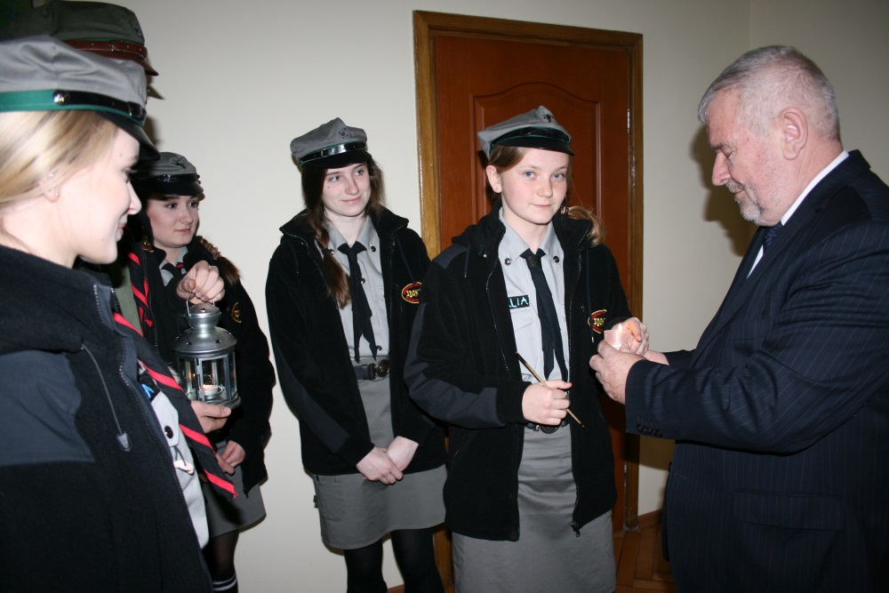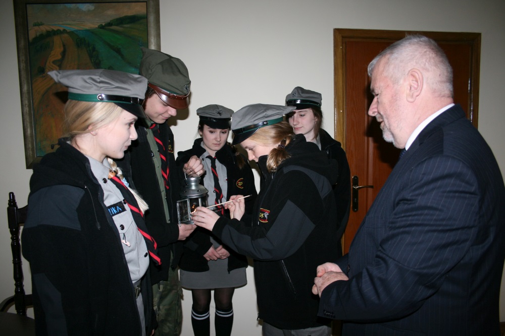 21 Grudnia 2017Przynieśli go harcerze z Drużyny Wędrowniczej 3 DSH im. R. Baden – Powella działającej w LO w Miechowie i przekazali wraz z życzeniami staroście Marianowi Gamratowi. Gospodarz powiatu dziękując podkreślił, że w obecnym czasie pokój jest szczególnie docenianą i oczekiwaną wartością. Symbol świąt, pokoju, pojednania i stabilizacji dotarł do Polski i Miechowa z Wiednia.