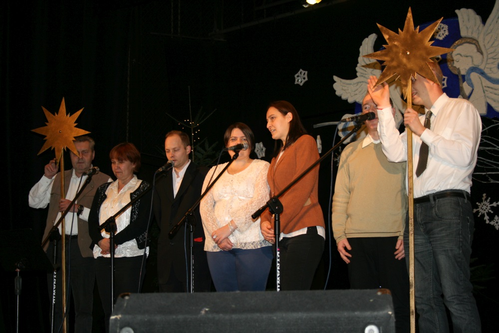 W sali kina Gryf w Miechowie uczestników imprezy witała nowa dyrektor Ośrodka Dorota Regucka. Starosta Marian Gamrat zaznaczył, że przegląd jet sprawdzonym sposobem kultywowania wokalnych bożonarodzeniowych i noworocznych tradycji, a przy okazji miejscem integracji i wymiany doświadczeń uczniów i nauczycieli z kilku specjalistycznych ośrodków z Małopolski. Naczelnik miechowskiego oddziału Poczty Polskiej Jadwiga Zięba obdarowała dyrektorkę Ośrodka okolicznościową monetą z motywem kolędniczym i cyrkoniami, wyemitowaną w 2010r. przez Skarbnicę Narodową. Na przedświąteczne kolędowanie w tym roku zgłosiło się 6 ośrodków. Swoje umiejętności wokalne i interpretacyjne kolęd, pastorałek i pieśni świątecznych zaprezentowali wychowankowie z: Zespołu Szkół im. S.Wyspiańskiego z Waganowic, Warsztatów Terapii Zajęciowej „Szansa” z Podlesic, Polskiego Stowarzyszenia na Rzecz Osób z Niepełnosprawnością Intelektualną z Miechowa, Specjalnego Ośrodka Szkolno – Wychowawczego w Myślenicach, Specjalnego Ośrodka Szkolno – Wychowawczego Nr 1 w Krakowie i oczywiście ze Specjalnego Ośrodka Szkolno – Wychowawczego w Zagorzycach k/Miechowa. Występujące zespoły zadbały o akcenty świąteczne (stroje i rekwizyty). Zgromadzeni usłyszeli najpiękniejsze świąteczne melodie i mogli nucić je razem z wykonawcami. Występującym żywiołowo sekundowali opiekunowie, wychowawcy i rodzice. W trakcie koncertu pojawił się Mikołaj w towarzystwie Śnieżynki, którzy częstowali zgromadzonych słodyczami.